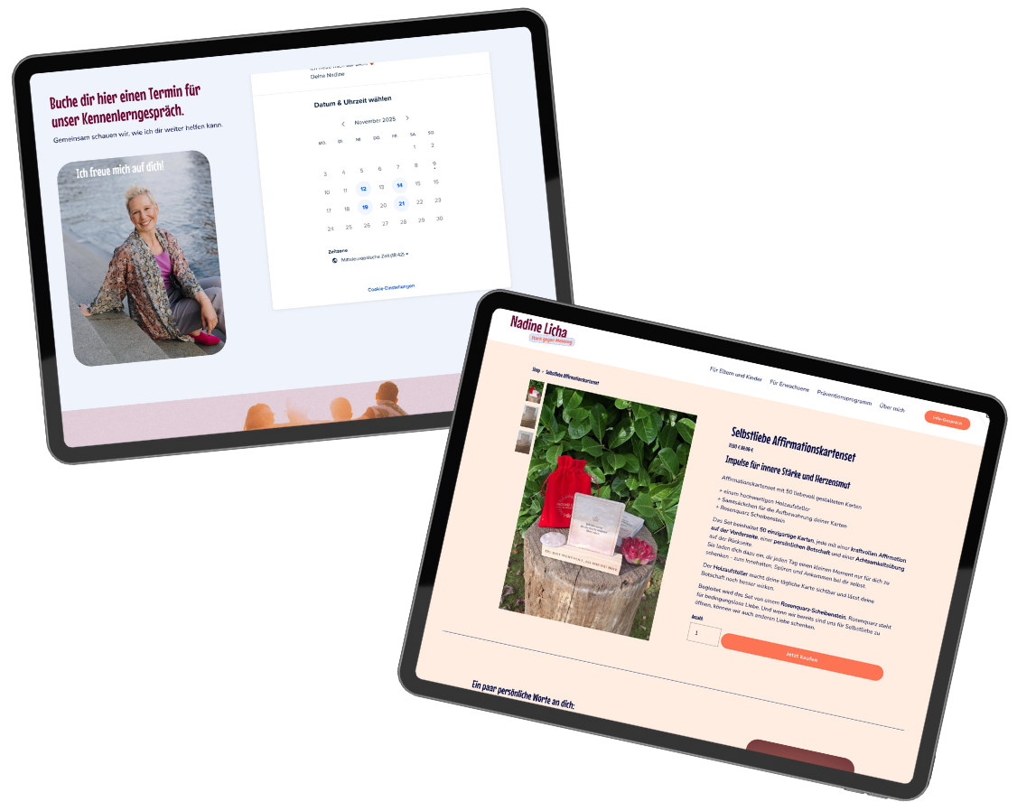 So fügt sich alles auf der Website zusammen und spiegelt Nadines Professionalität und Verbundenheit perfekt wider.