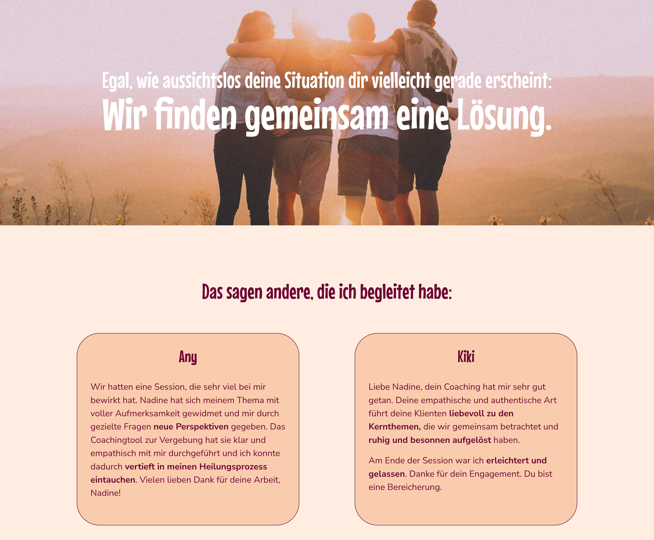 Eine Website, die ein warmes und tröstendes Gefühl vermittelt und gleichzeitig Hoffnung durch Nadines Angebote gibt